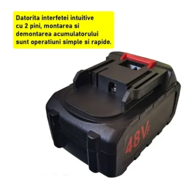 Acumulator De Rezerva 48V Cu 2 PINI Compatibil Cu Motocoasa SIKS, Masina De Tuns Iarba, Drujba, Mini Fierastrau, Aparat De Spalat Cu Presiune, Negru