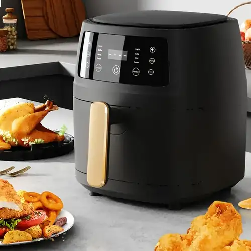Friteuza Airfryer cu aer cald 2800W, capacitate mare 15L, multifunctional pentru cartofi prajiti, carne, coacere si altele, 11 programe, display LCD, Negru-Auriu