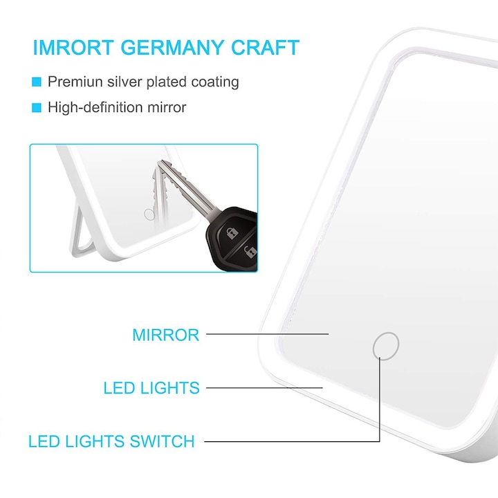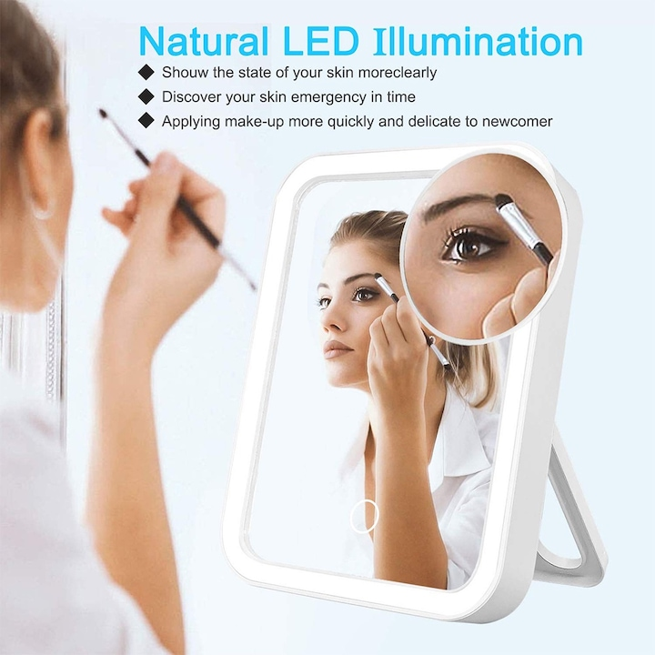 Oglinda Machiaj Led Cu Ecran Tactil,3 Moduri Lumina,mica
